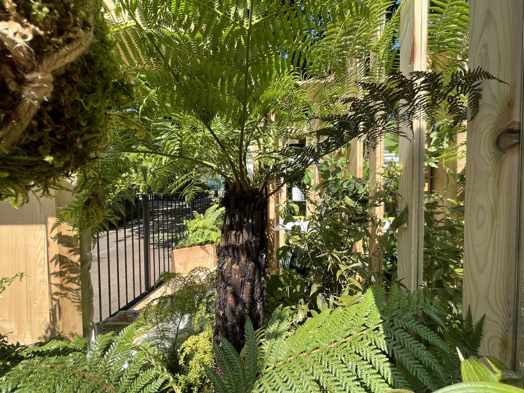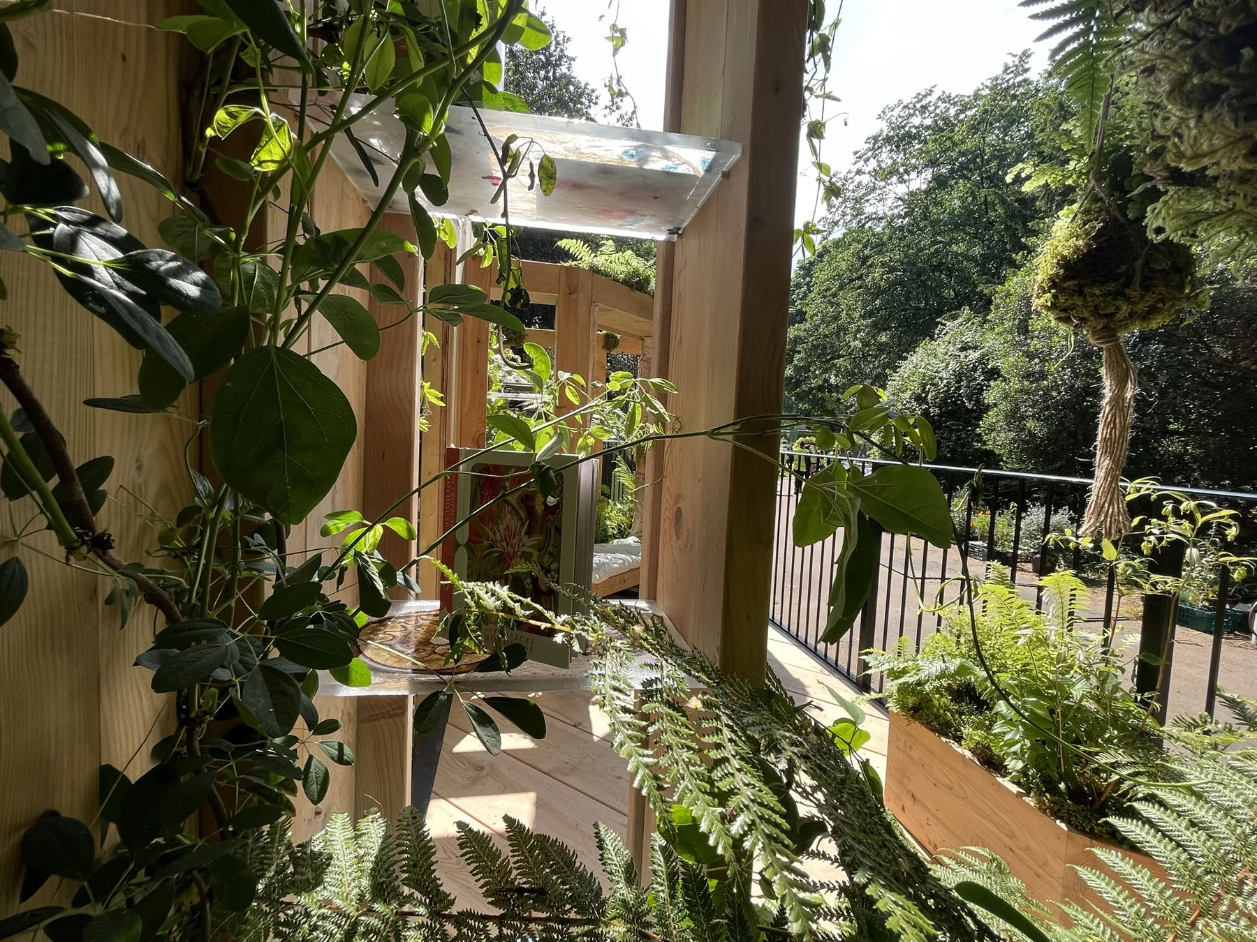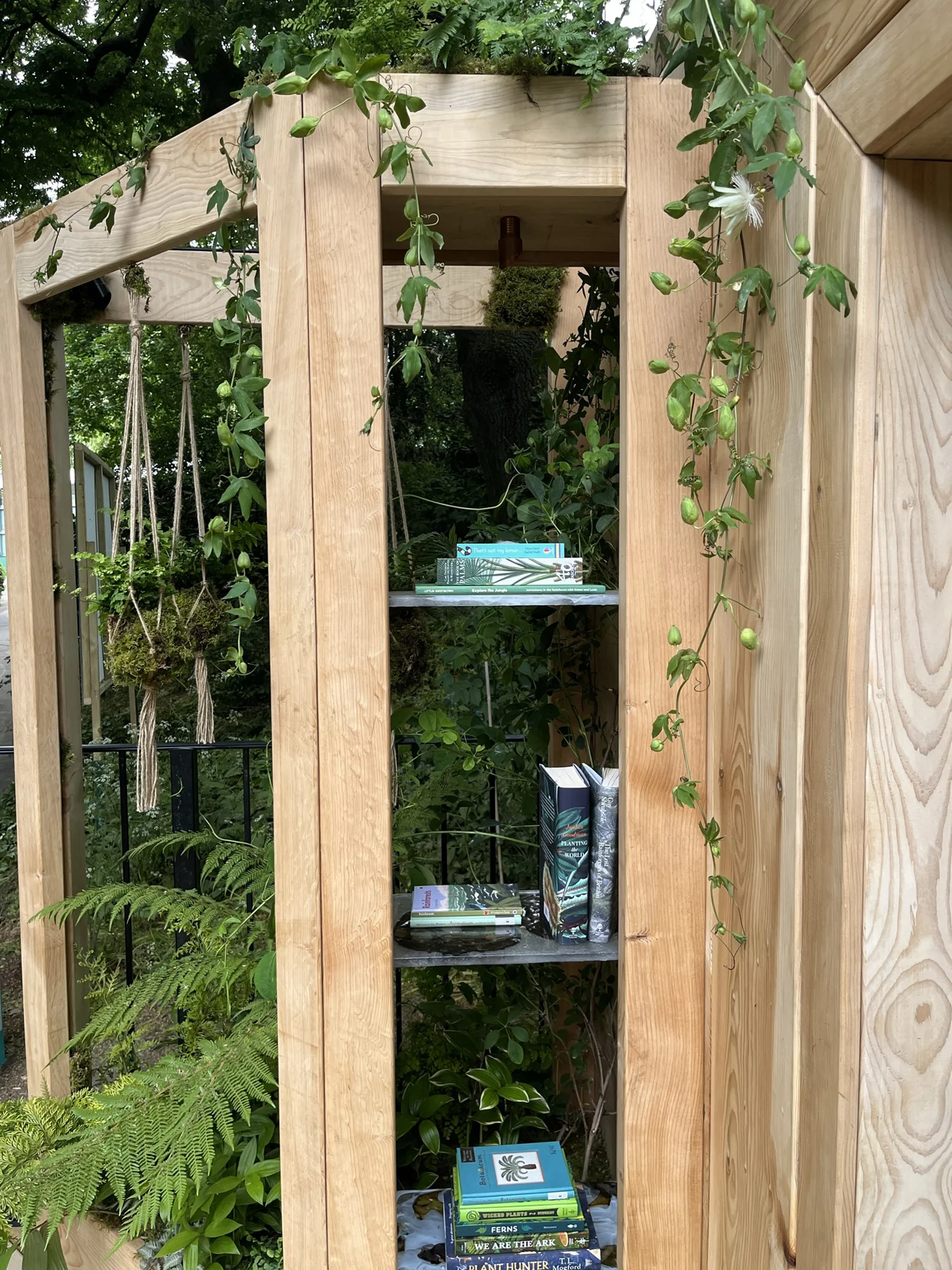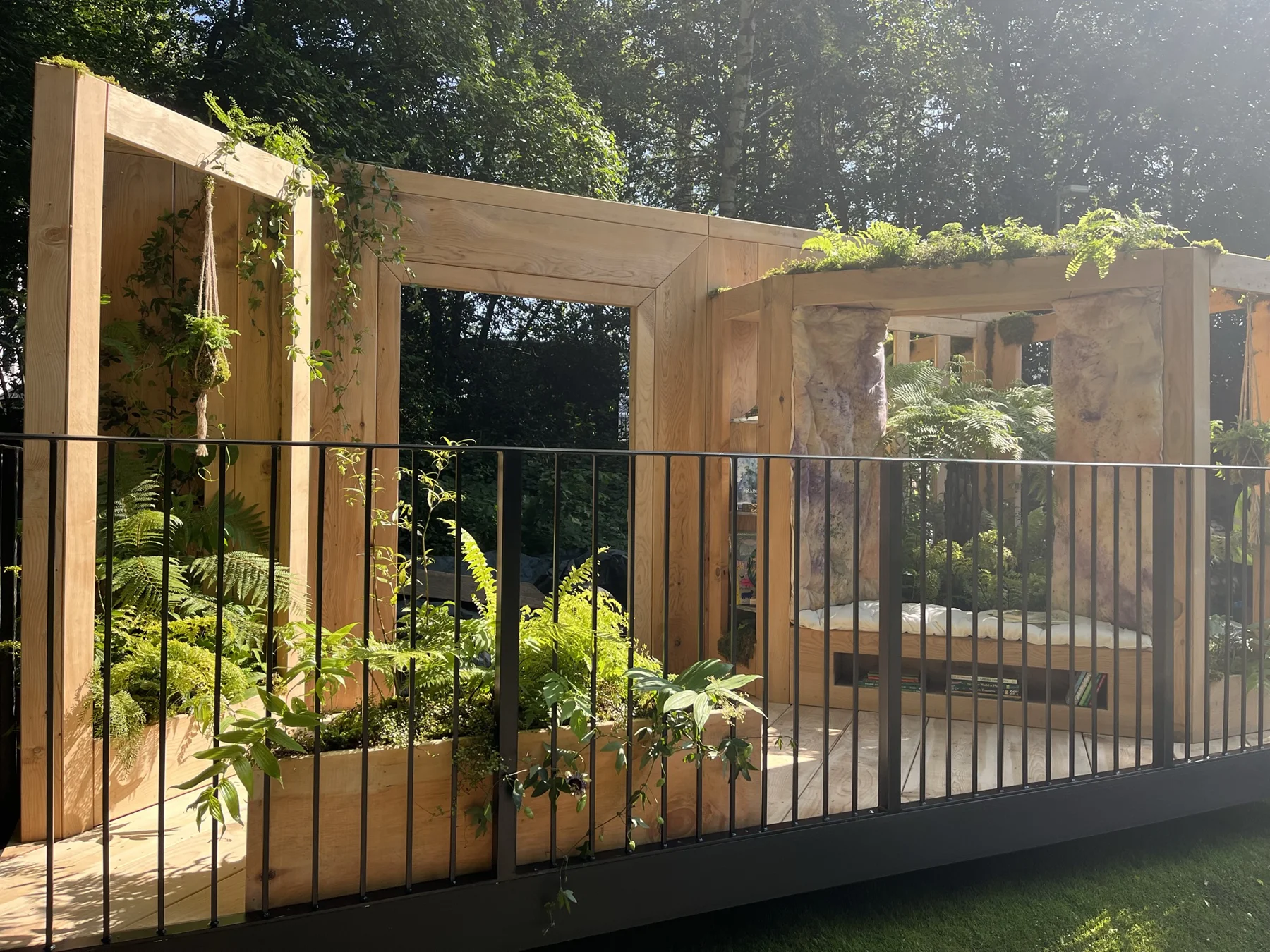 The idea for the Rainforest Conservation garden began with a simple vision: a window seat surrounded by rainforest greens and books — a space where children could discover the wonder of nature and be inspired to protect it. Reading lies at the heart of that idea, transporting us through imagination into distant ecosystems whose well-being depends on our collective actions. Many tropical rainforest species used in UK gardens are now in decline, alongside the flora and fauna of those regions. This garden celebrates the beauty of sustainable, UK-grown timber and plants that echo the richness of global rainforests while thriving in our climate.